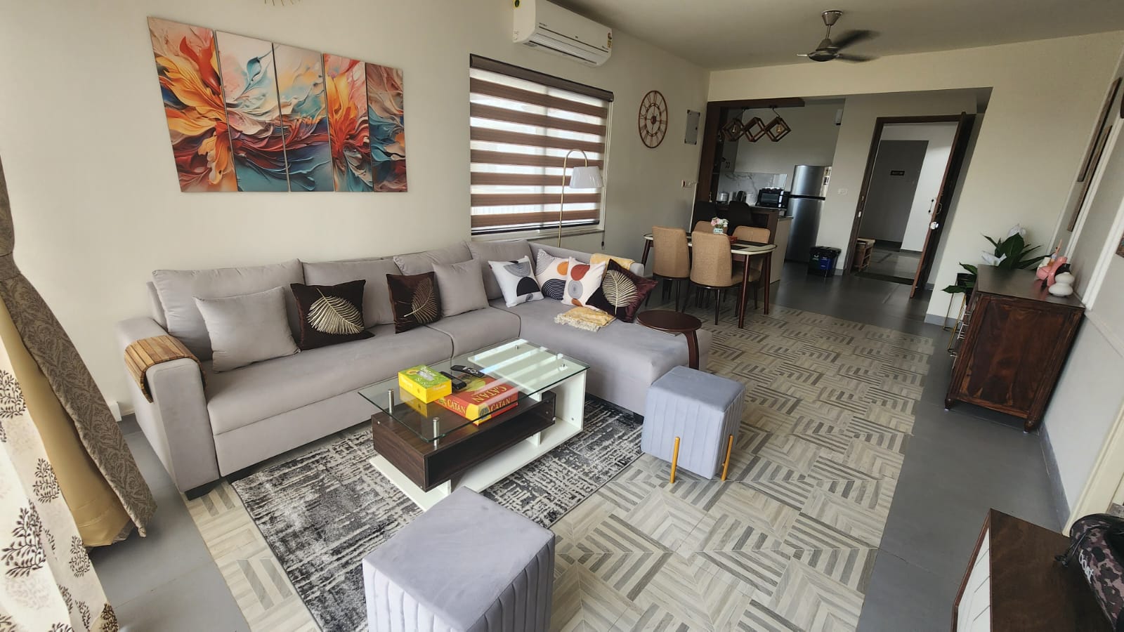 - Fixtures Provided Modular kitchen, Air conditions, False ceiling, Wardrobes, fans, lights, Pantry, Working Desk, Cabin, Compound Wall