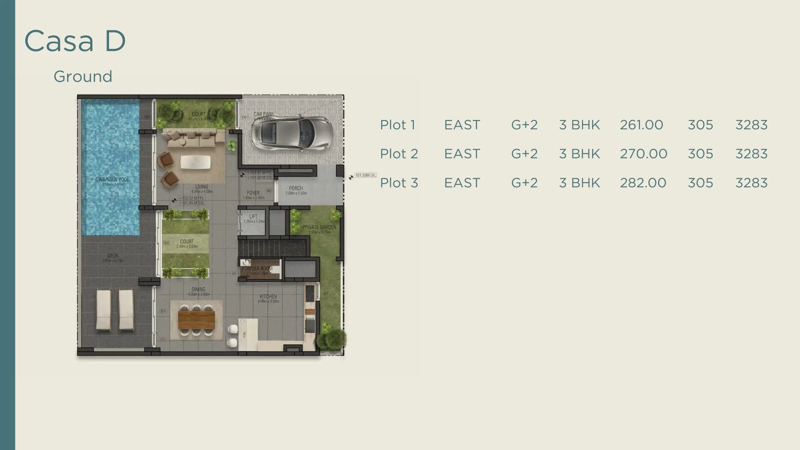 - Plot Area 3,100 SqFt (288.00 sqmt)