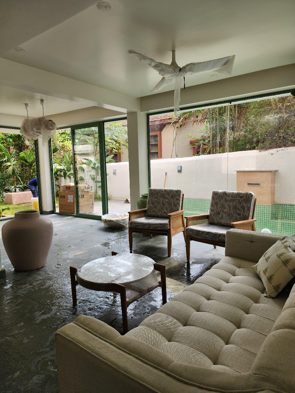 - Fixtures Provided Modular kitchen, Air conditions, False ceiling, Wardrobes, fans, lights, Compound Wall